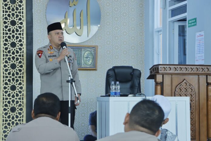 AKBP Agung Pranajaya menyampaikan pentingnya meneladani makna Isra’ dan Mi’raj, khususnya kewajiban salat lima waktu sebagai pondasi pembentukan karakter yang disiplin, jujur, dan bertanggung jawab. Nilai-nilai tersebut dinilai sangat relevan dalam menghadapi tantangan tugas kepolisian yang semakin kompleks.