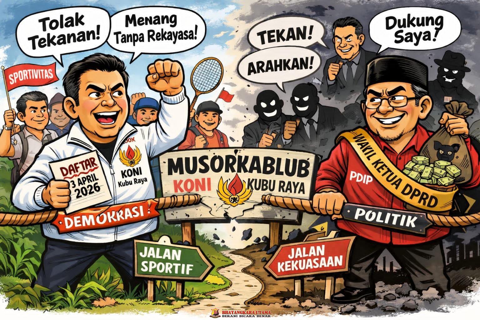 BHAYANGKARAUTAMA.ID —Kubu Raya 3 April 2026 , Kalimantan Barat – Musyawarah Olahraga Kabupaten luar biasa (Musorkablub) KONI Kubu Raya kini memasuki fase paling menentukan. Bukan sekadar kontestasi kepemimpinan, tetapi pertarungan terbuka antara nilai sportivitas melawan praktik-praktik yang mulai dipertanyakan.