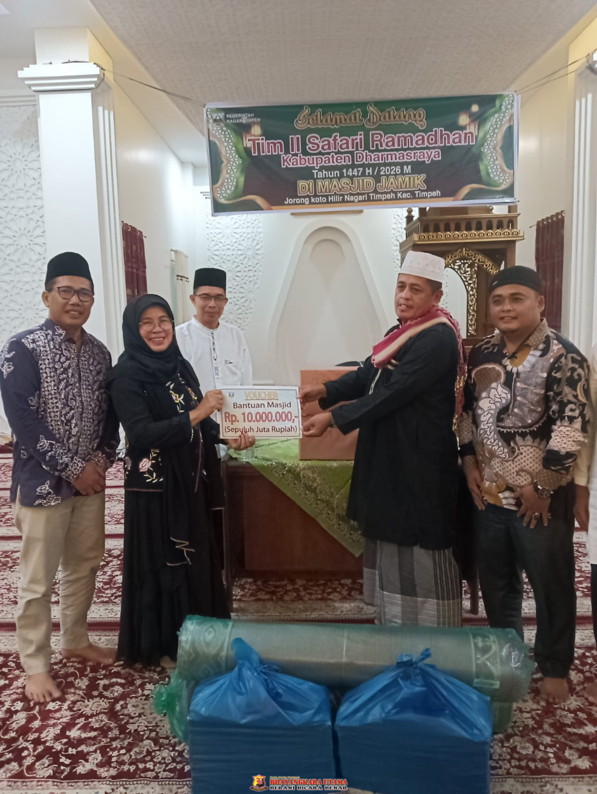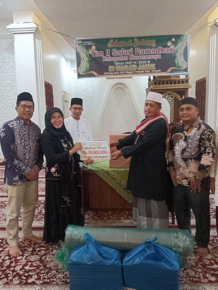 Dharmasraya – Wakil Bupati Dharmasraya Lely Arni. S.Pd. M.Si, didampingi, beberapa orang anggota DPRD Dharmasraya, Staf ahlli Bupati, Kepala Dinas dan unsur Forkopinda lainnya, Senen ( 23/2/2026) awali kunjungan safari Ramadhan perdana di Mesjid Jamik, Nagari Timpeh, Kecamatan Timpeh, Kabupaten Dharmasraya.